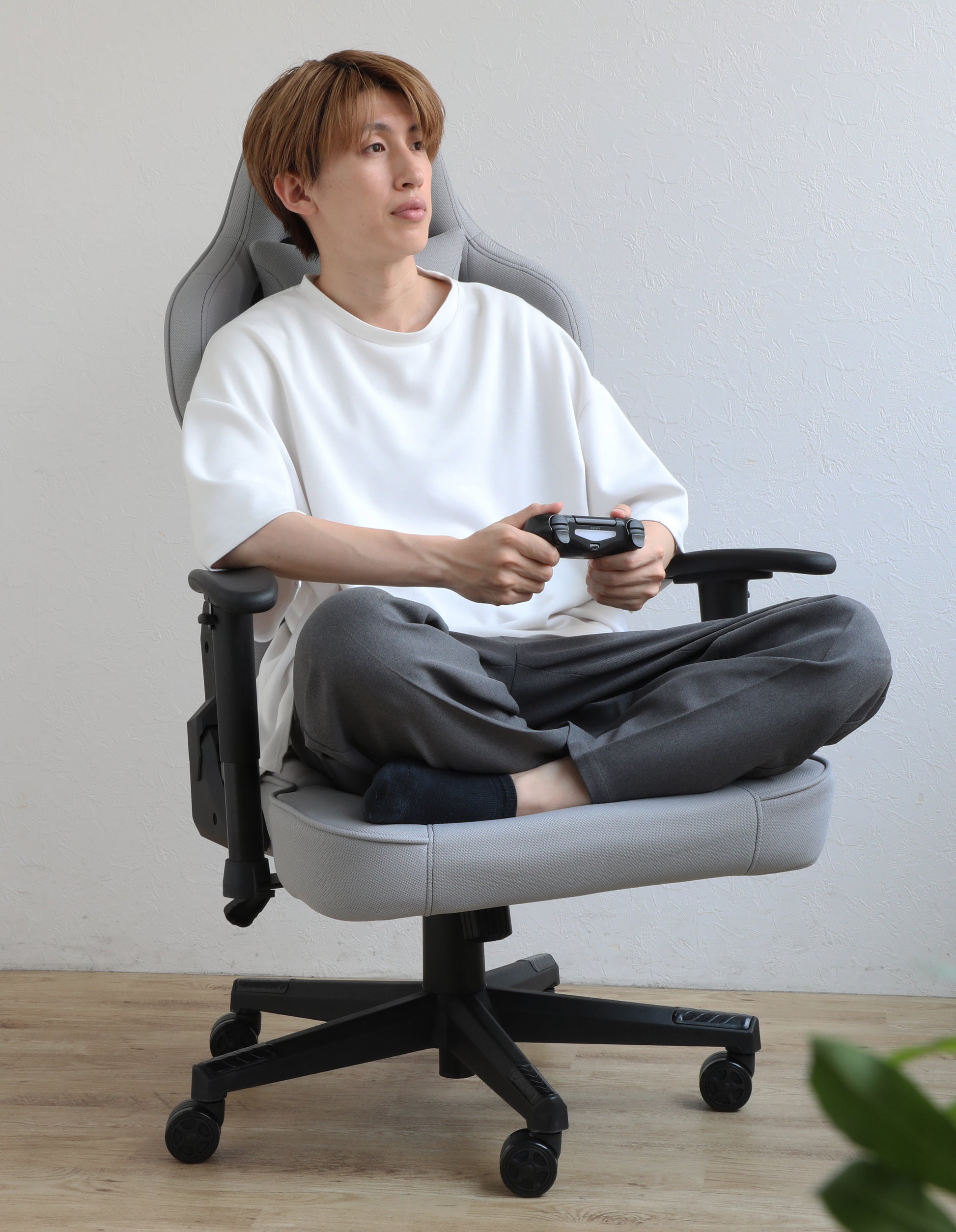 集中したいときやリラックスしたいときに合わせて、横座り・片あぐら・三角座りなどお好みの座り方ができます。
