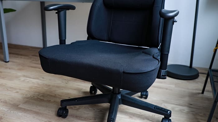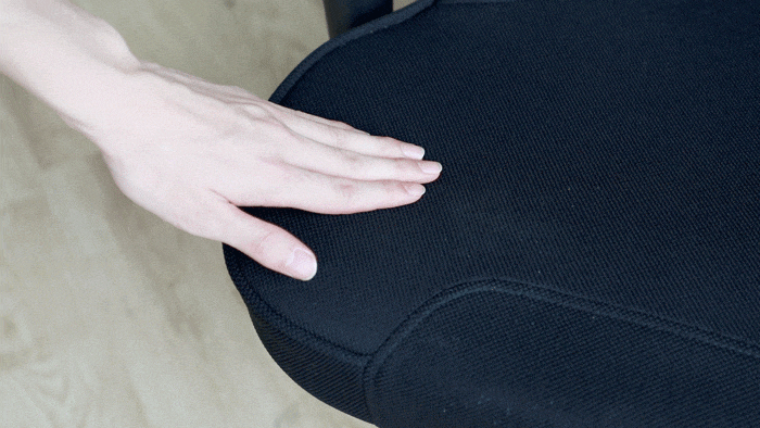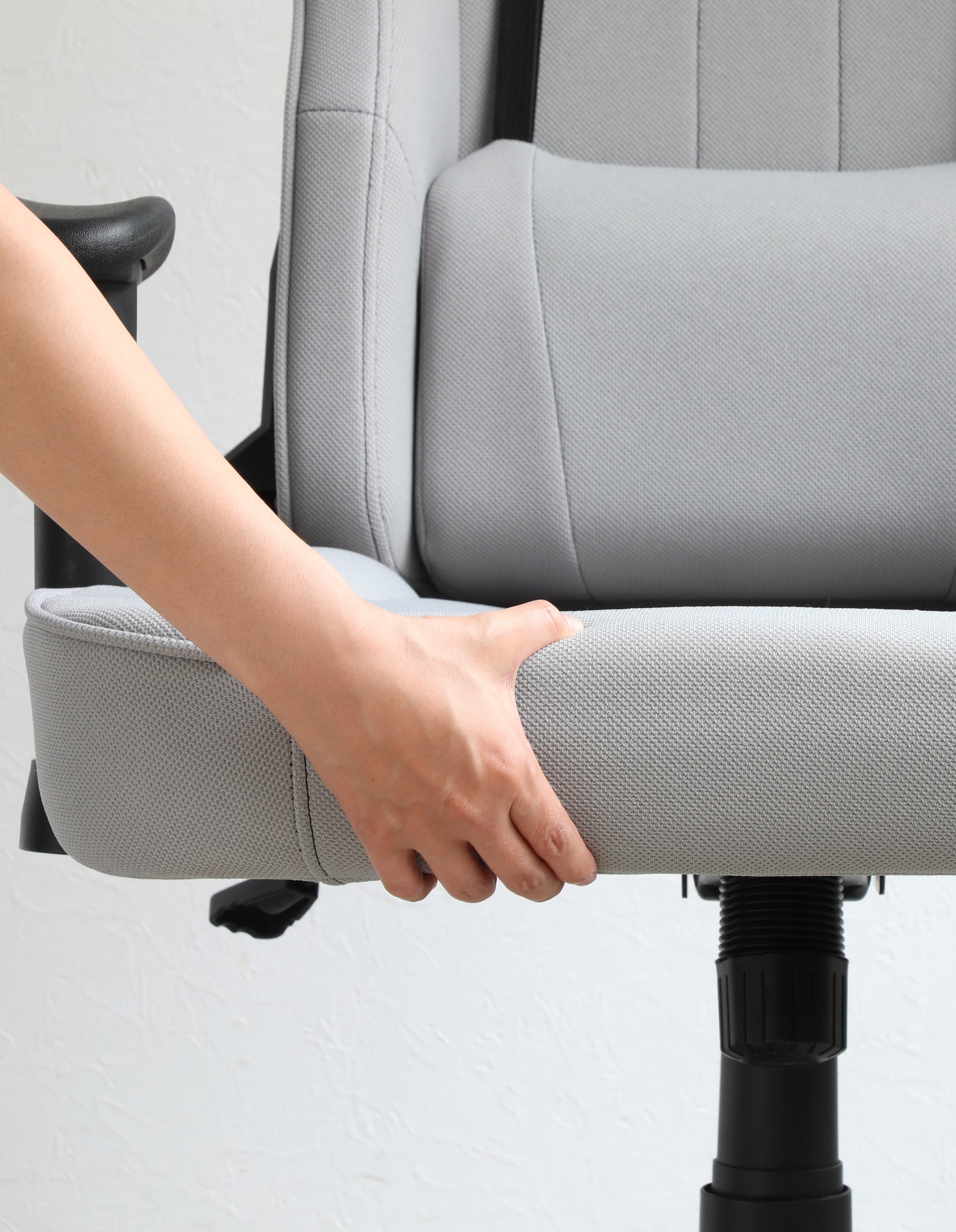 ウレタンがみっちりと詰まって長期の使用でもへたりにくい、厚さ最大11cmの肉厚座面。底つき感を感じず長時間でも快適に作業を行えます。