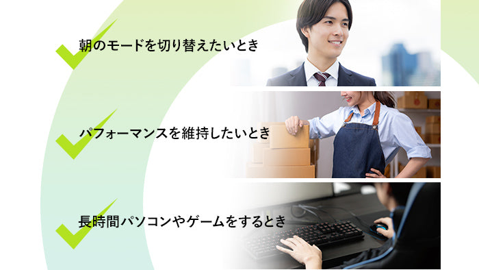 朝のモードを切り替えたいとき、パフォーマンスを維持したいとき、